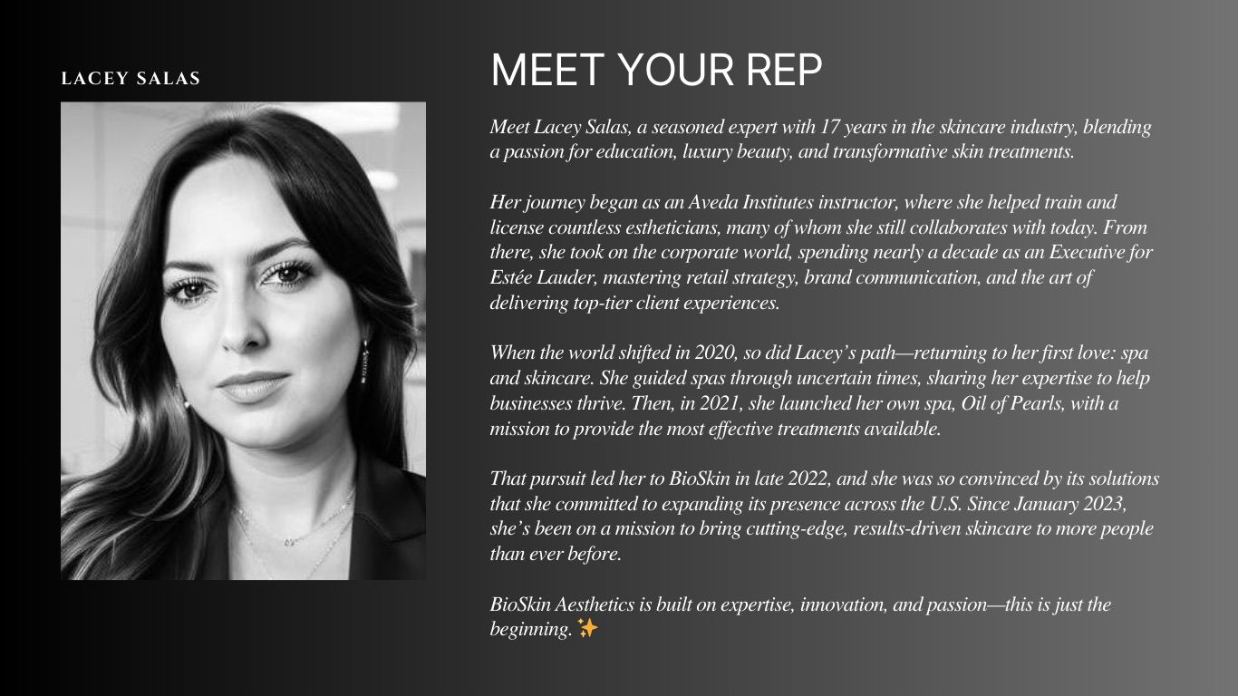Learn about pricing + packages, how to make your purchase, gain access to exclusive news, training, quarterly business updates and Live Q & A with me throughout your journey with BioSkin Aesthetics.